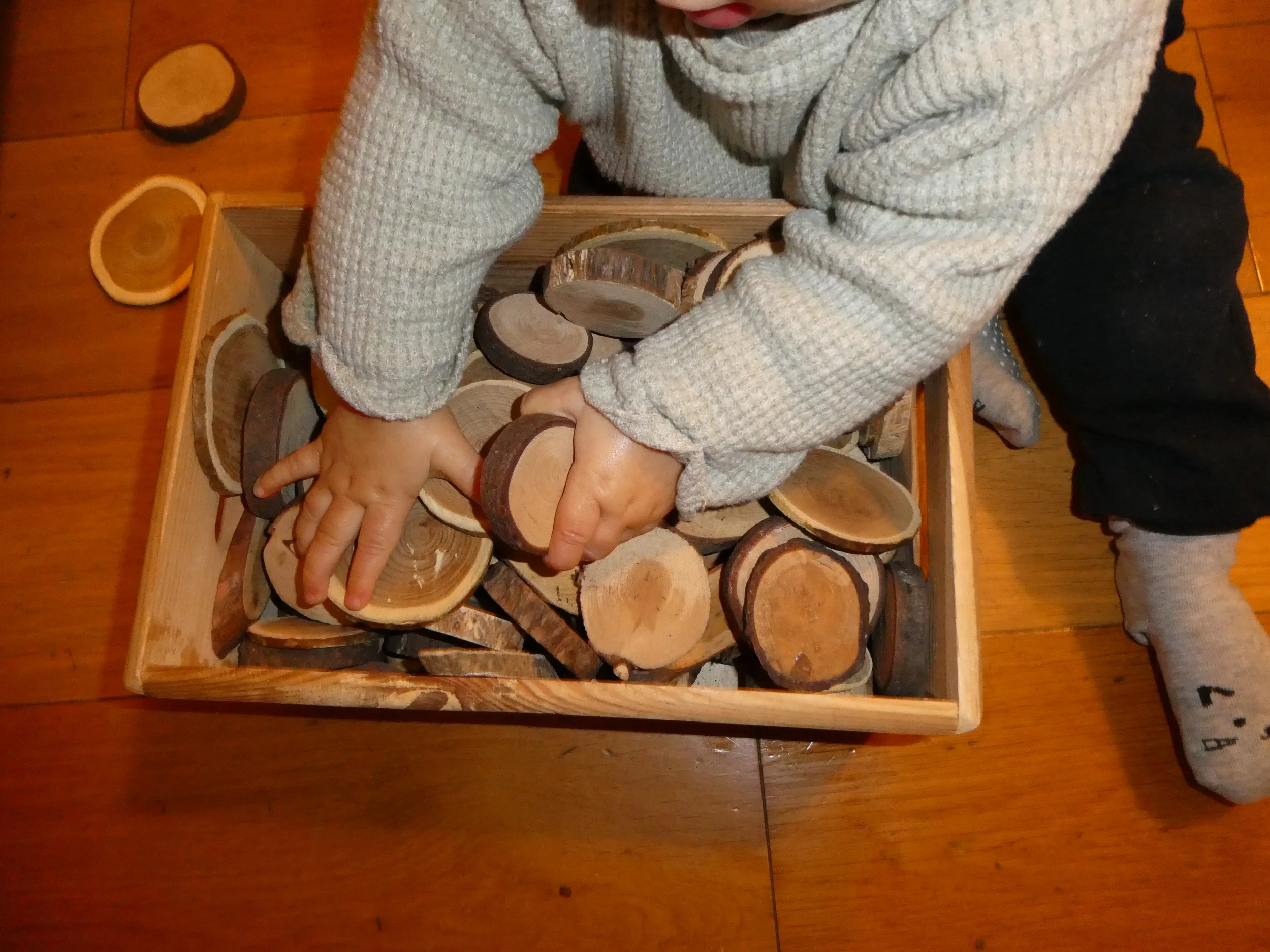 Il materiale offerto ai bambini e alle bambine ha un ruolo cruciale nel processo di apprendimento, oggetti e materiali, se valorizzati e collocati in modo significativo, diventano importanti nella relazione educativa, mediatori di relazioni, promotori di curiosità, capaci di generare metafore di conoscenza. Offriamo infatti prevalentemente materiale naturale e destrutturato, perchè ci appartiene, è vicino alla nostra idea di bambino/a e si presta ogni volta a nuove letture e possibilità. Diventa importante così, dal nostro punto di vista, la contaminazione tra materiale artificiale e materiale naturale, tra materiale strutturato e non strutturato, che nelle mani di bambini/e si trasformano in narrazioni, invenzioni e in nuove possibilità.